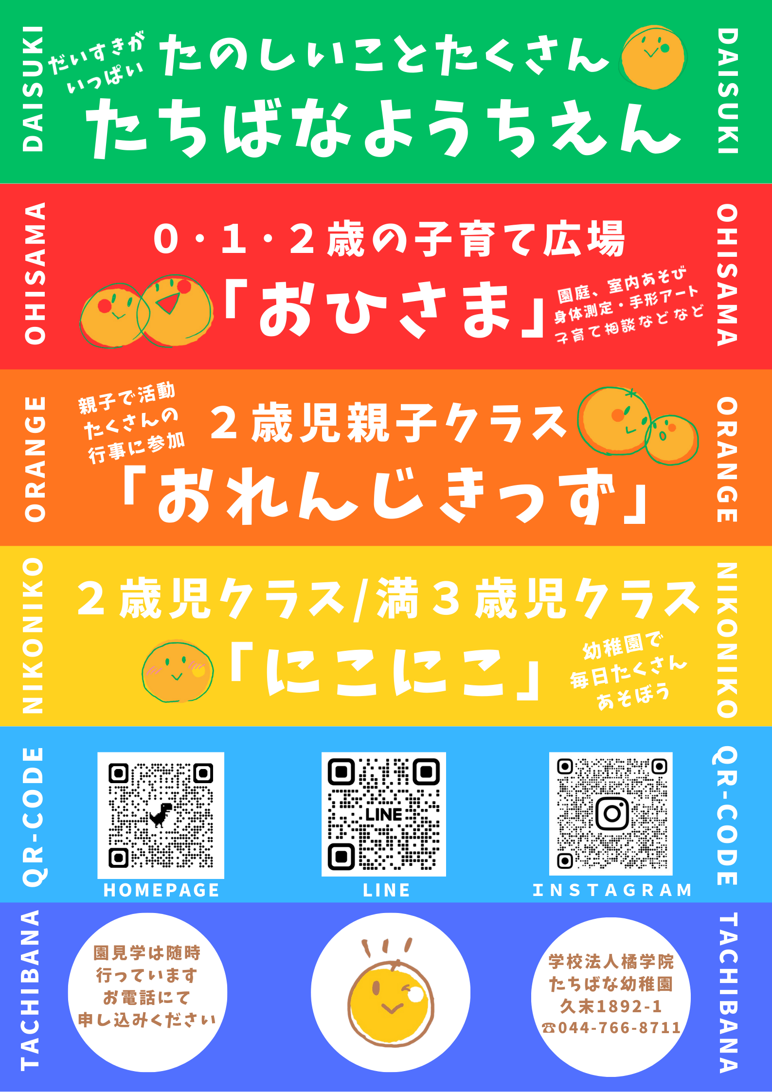 たちばなようちえんでは、楽しいことがたくさんまっています!